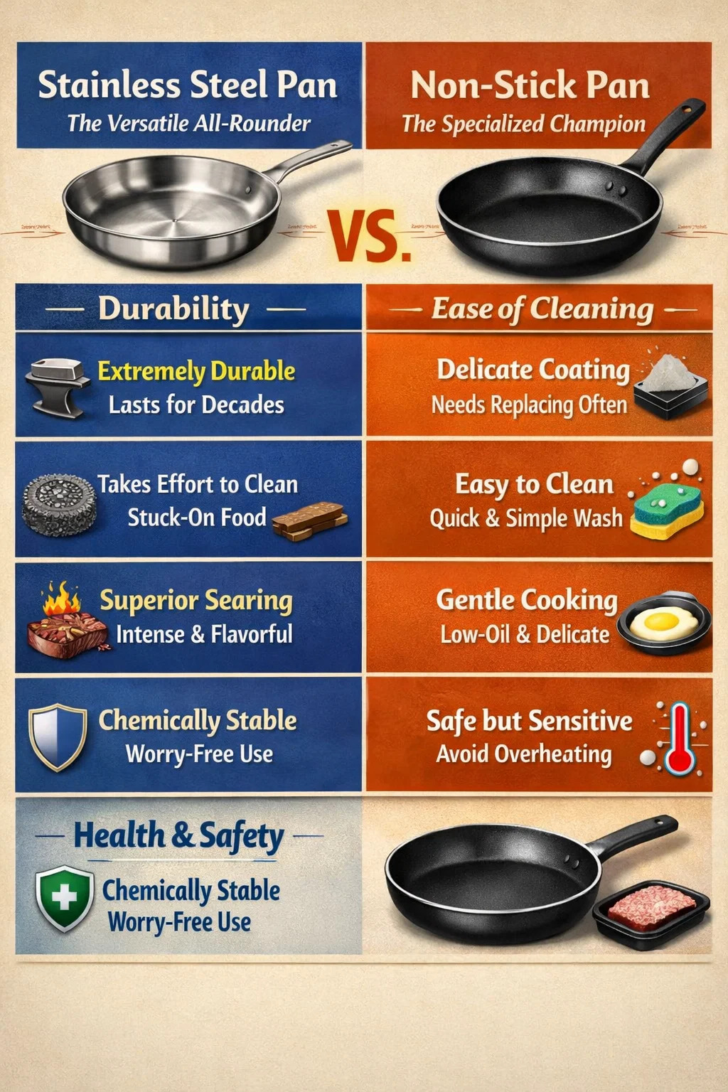 রান্নার পাত্র নির্বাচন করার সময়, স্টেইনলেস স্টিল এবং নন-স্টিক প্যানগুলির প্রত্যেকের নিজস্ব সুবিধা রয়েছে। এগুলি একজনের পরিবর্তে অন্যটির পরিবর্তে নয়, বরং রান্নাঘরে একজন "বহুমুখী অলরাউন্ডার" এবং "বিশেষ চ্যাম্পিয়ন" এর মতো।
