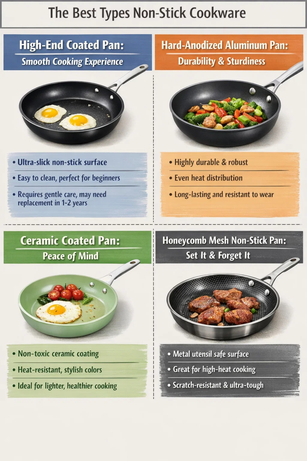 সেরা নির্বাচন নন-স্টিক রান্নার পাত্র এটি একটি একক "পরম সেরা" বিকল্প খোঁজার বিষয়ে নয়, কারণ প্রত্যেকের রান্নার ধরন আলাদা। আপনার জন্য সেরা প্যানটি হবে আপনার রান্নার অভ্যাস এবং রক্ষণাবেক্ষণের পছন্দগুলির সাথে সবচেয়ে উপযুক্ত।