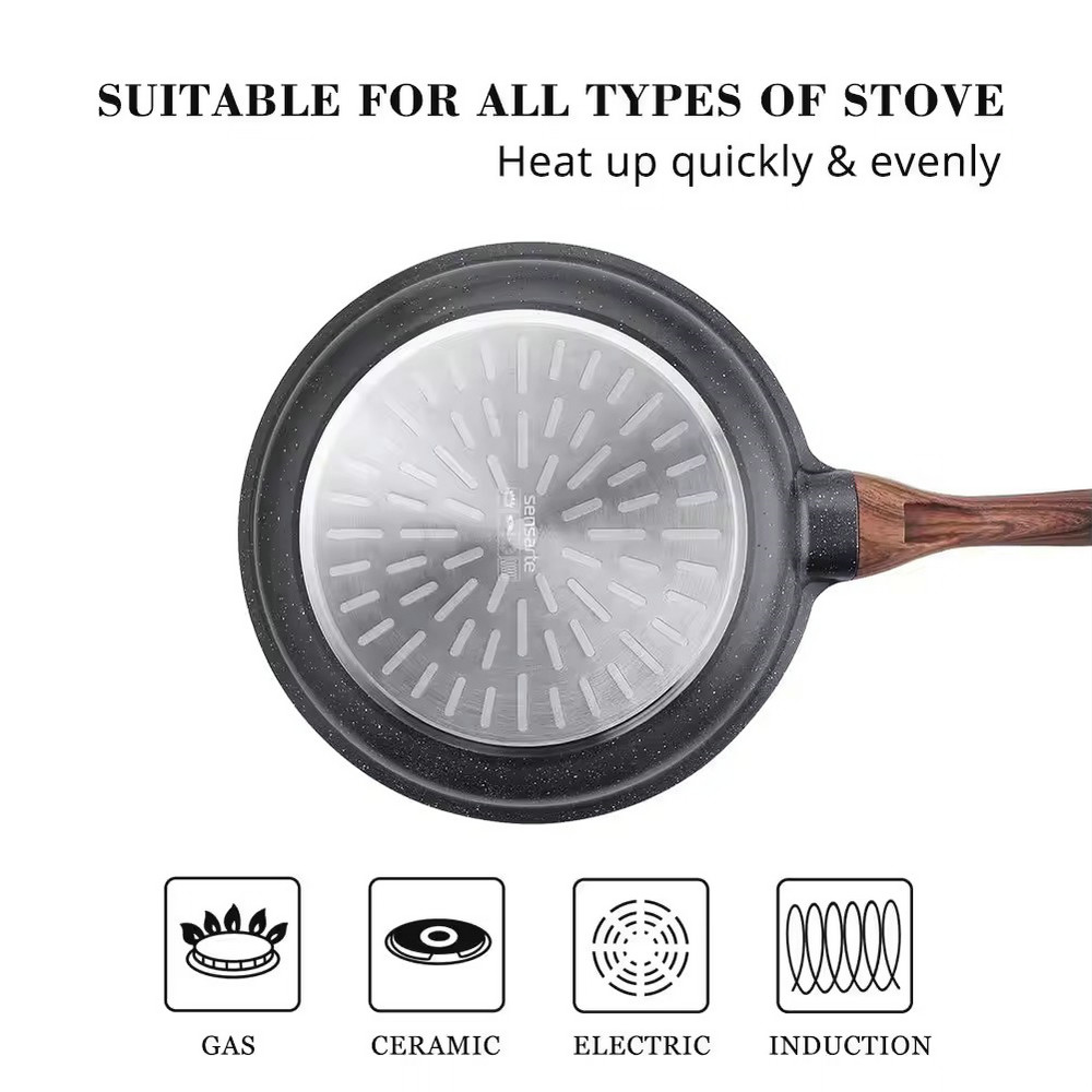 কাঠের হাতল সহ কুকওয়্যার মাল্টিপারপাস কাস্টমাইজড ননস্টিক গভীর ফ্রাইং প্যান Wholesale