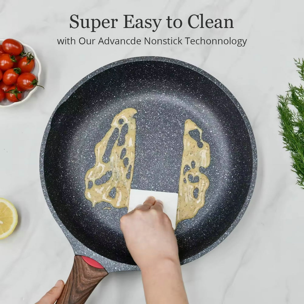 কাঠের হাতল সহ পূর্ণ আকারের কাস্টম লোগো বড় বড় ননস্টিক ফ্রাই প্যান