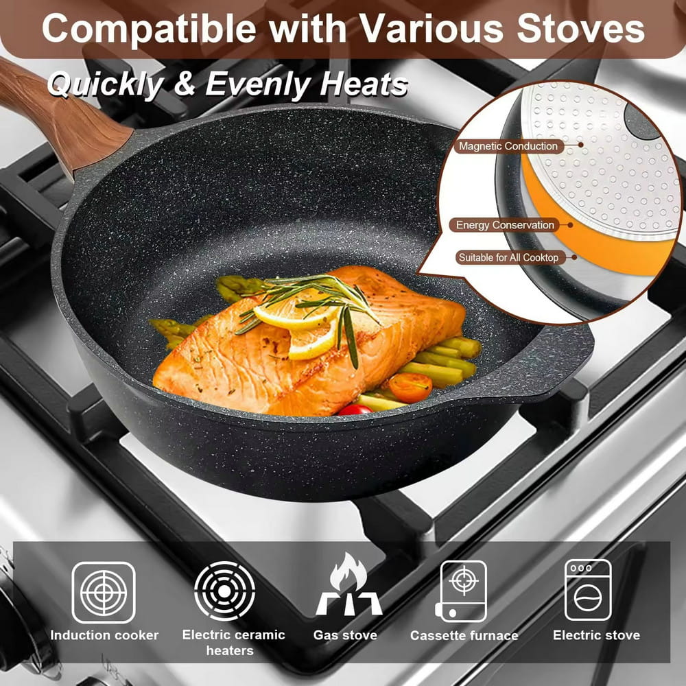 কাঠের হাতল সহ পূর্ণ আকারের কাস্টম লোগো বড় বড় ননস্টিক ফ্রাই প্যান Wholesale