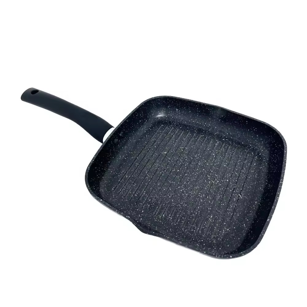 ইন্ডাকশন কুকার বিফ ফ্রাইপ্যান স্টেক ফ্রাইং প্যান স্কয়ার সিঙ্গেল হ্যান্ডেল কুকওয়্যার সহ অ্যালুমিনিয়াম ননস্টিক মার্বেল লেপ গ্রিল প্যান